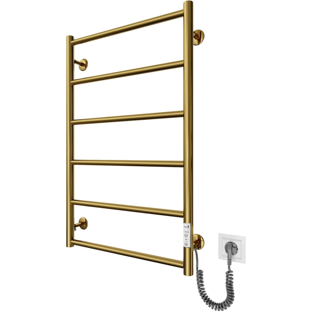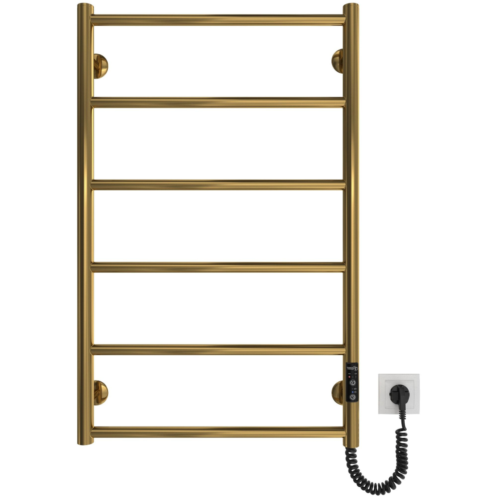 Електросушарка для рушників побутова Класік F НР-I 800х530/75 TR K. Обладнана таймер-регулятором та конектором для підключення в розетку з будь-якого боку. Сумісна з комплектом прихованого підключення. Має 6 ребер та стояки з круглої труби.