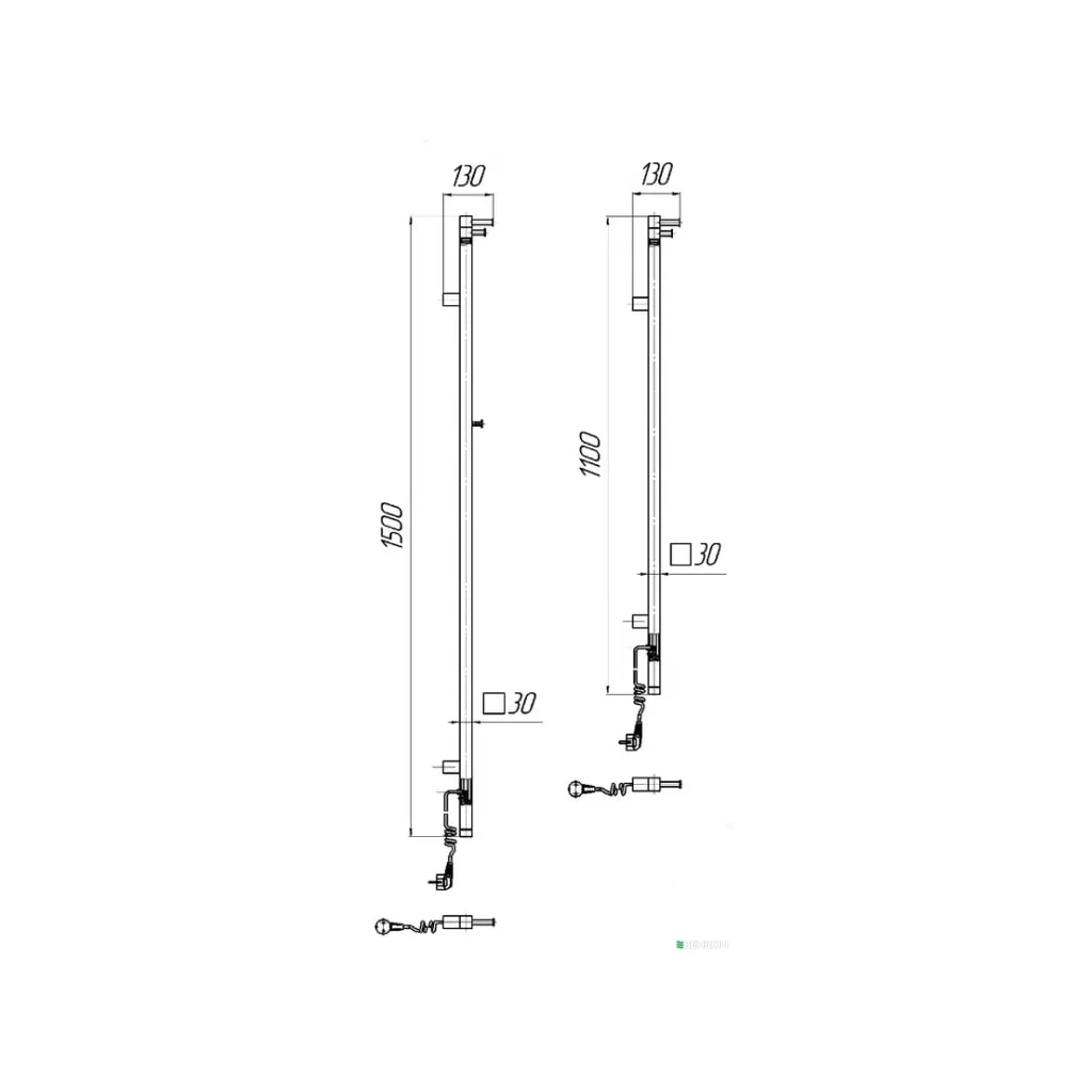 Сушарка для рушників MARIO Рей Кубо-І, 1500x30x55130мм, чорний мат (2.2.1203.16.BM)