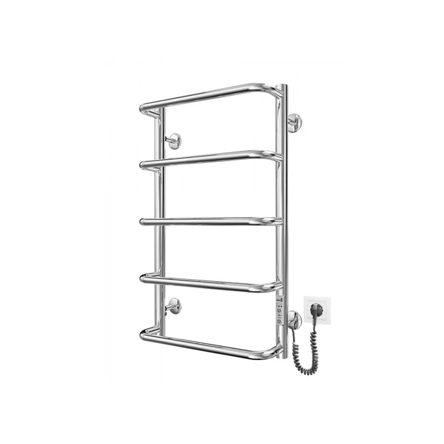 Електросушарка для рушників побутова Стандарт НР-І 650х430/150 TR К. Обладнана таймер-регулятором та конектором для підключення в розетку з будь-якого боку. Сумісна з комплектом прихованого підключення. Має 5 ребер та стояки з круглої труби.