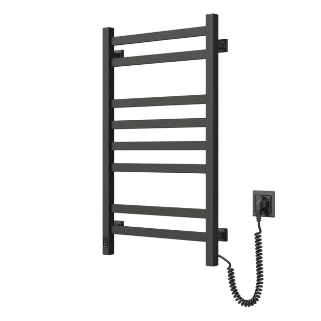Рушникосушка Авангард 480х800 Sensor (розташування шнура з вилкою — праворуч; колір — чорний муар) від українського виробника NAVIN виготовлена з вуглецевої сталі, яка відрізняється високою якістю й міцністю. Модель має надійне порошкове покриття. Товщина стінки колекторів (стійок) і перемичок сушки для рушників дорівнює 1,5 мм.