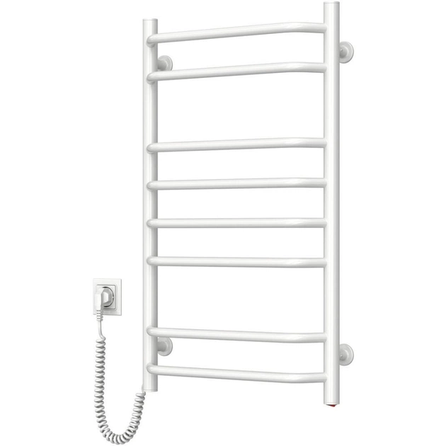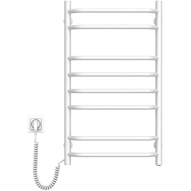 Електрична рушникосушка Navin Блюз 800×480 мм з лівим підключенням, виготовлена з фарбованої сталі. Має 8 секцій, потужність 142 Вт, ступінь захисту IP44. Максимальна температура – 55°C. Без терморегулятора, кріпиться стаціонарно.