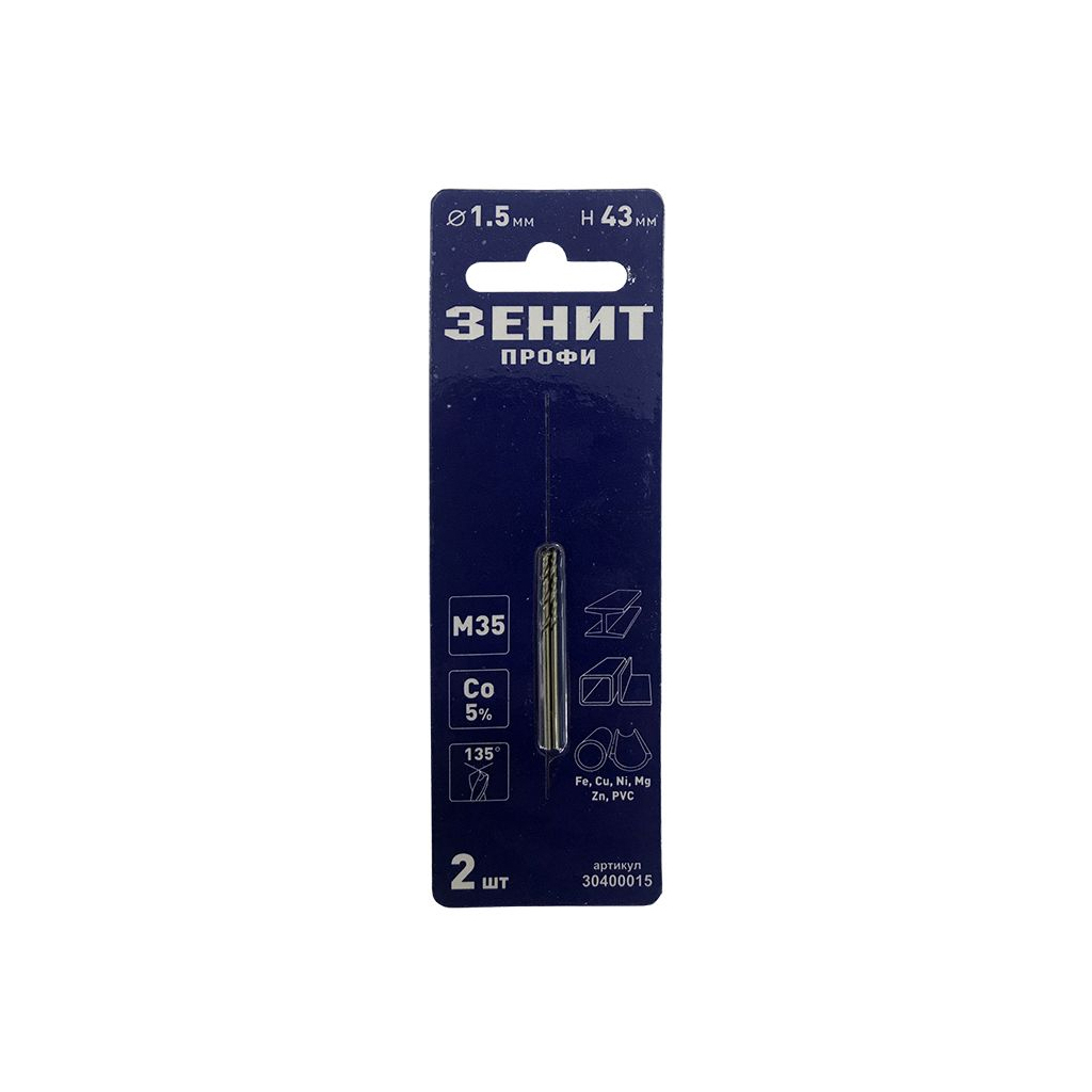 Свердло Зеніт "ПРОФІ" по металу 1,5х43мм (2шт) (30400015)