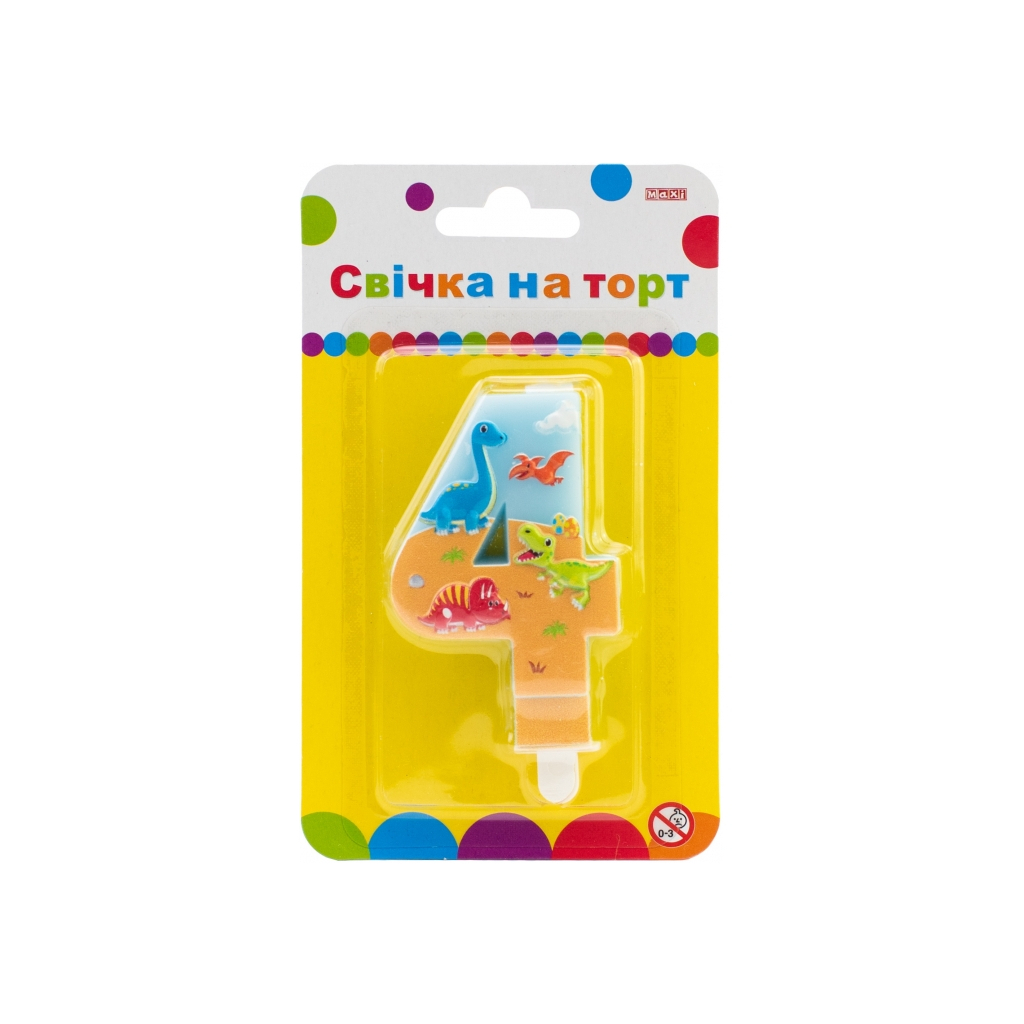 Свічка Maxi двостороння "4" із зображенням динозаврів висотою 7,62 см (MX622099-4)