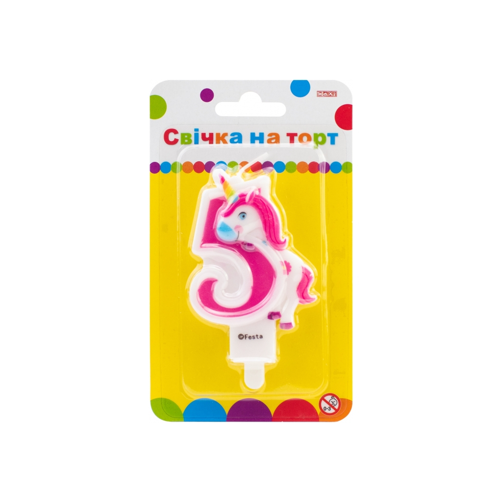 Свічка Maxi двостороння "5" із зображенням єдинорога висотою 7,62 см (MX622066-5)