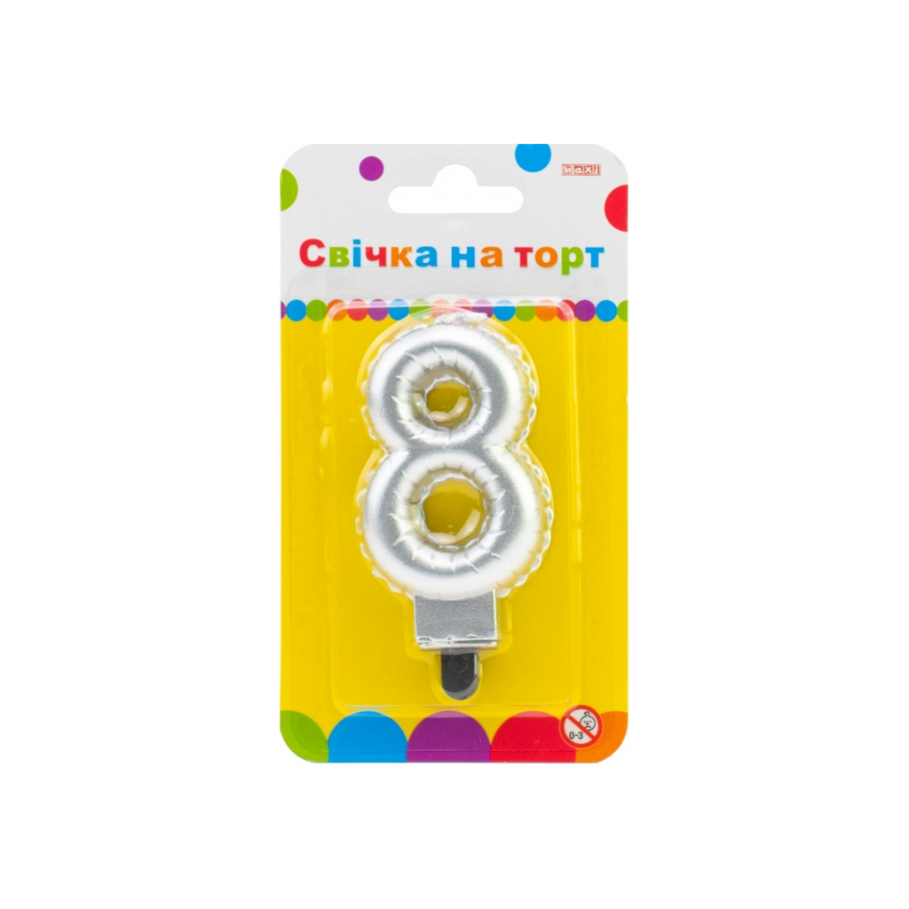 Свічка Maxi срібляста двостороння "8" у вигляді надувної кульки висотою 7,62 см (MX622095S-8)