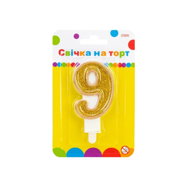Свічка Maxi золотиста двостороння з блискітками "9", 7,62 см, на торт (MX622083-9)