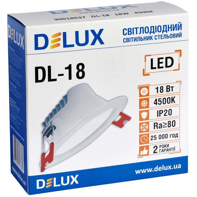 Світильник Delux DL-18 виготовлений з урахуванням найвищих стандартів якості. Використання світлодіодів останнього покоління SMD забезпечує не лише високу ефективність, але й тривалий термін експлуатації, який становить 25 000 годин. Це дозволяє значно зменшити витрати на обслуговування та заміну освітлювальних приладів.