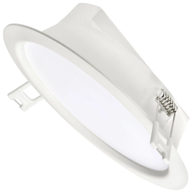 Світильник відзначається стильним дизайном із круглою формою і акуратним білим кольором, що робить його універсальним вибором для будь-якого інтер'єру. Призначений для вбудованого монтажу, він ідеально впишеться у стелю, не займаючи зайвого місця. Інтегрований драйвер та зручні монтажні лапки значно спрощують процес встановлення, що особливо важливо для швидкої та безпечної інсталяції.