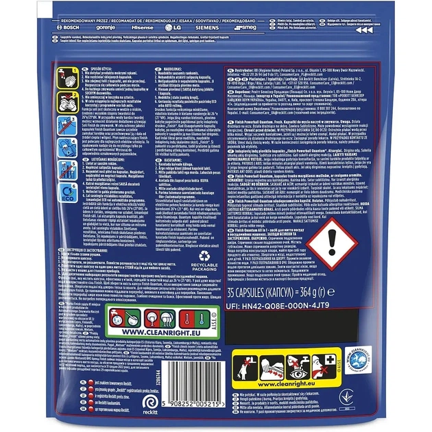 Камери з порошком й гелем призначені для очищення та знежирення найскладніших забруднень, а рідкий powerball забезпечує неймовірний блиск. Ідеальний результат миття з першого разу за допомогою Finish Quantum Ultimate.