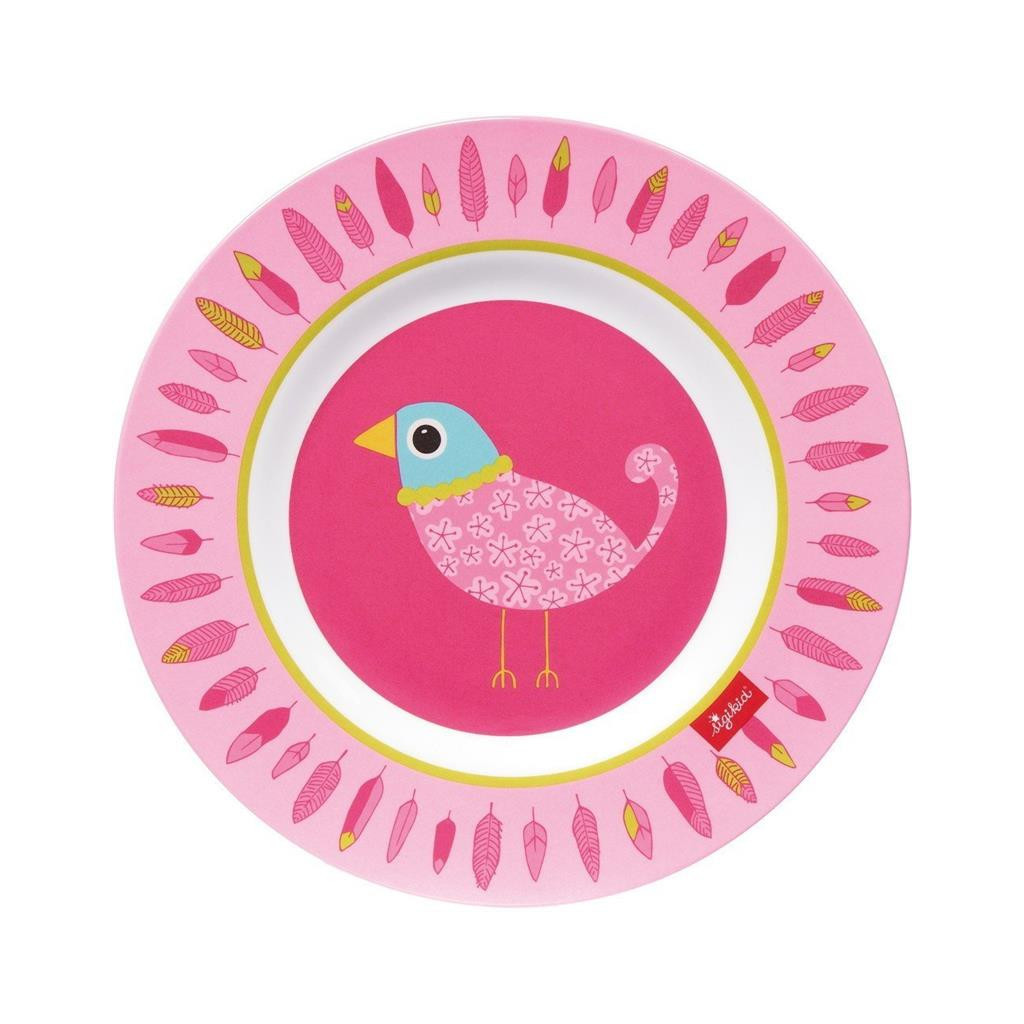 Дитяча тарілка «Finky Pinky» від німецького бренду sigikid. Тарілка рожевого кольору з пташкою на малюнку виготовлена з якісного пластику. Матеріал дуже практичний. Тарілку можна мити в посудомийній машині, матеріал відрізняється зносостійкістю і не ламається. Яскраві малюнки залучатимуть дітей.
