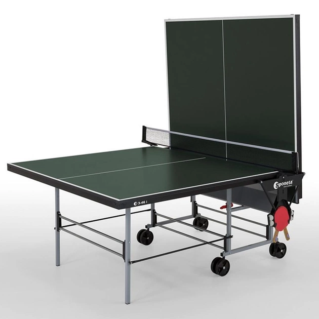 Стіл для настільного тенісу Sponeta S 3-46i - недорогий універсальний складаний тенісний стіл для використання в закритих приміщеннях. Завдяки наявності металевої окантовки по периметру столу (профіль 36 мм) має підвищену стійкість і великим запасом міцності. Рекомендується для використання в спортивних клубах для аматорської гри в настільний теніс.