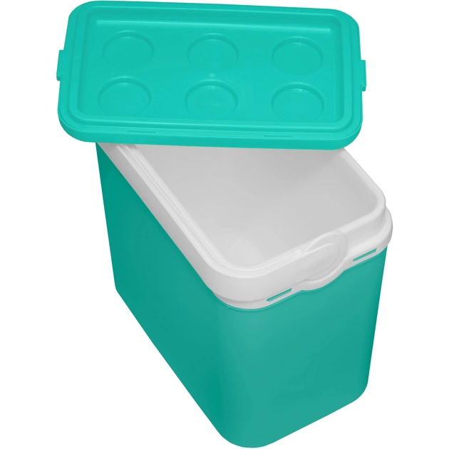 - Матеріал — ударостійкий пластик, не містить бісфенолу А; термоізоляція — суцільний полістирол у корпусі, що повторює форму контейнера без розривів.