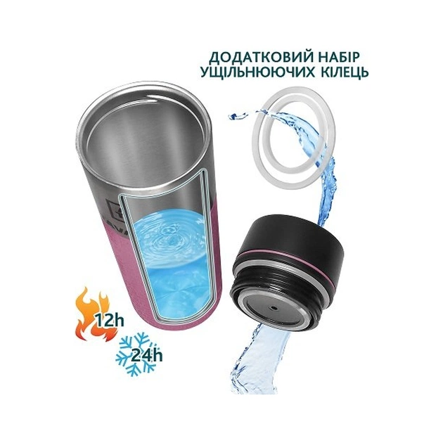 Термокружка Tavialo + 2 ущільнювальних кільця 420 мл Рожевий (190420111)