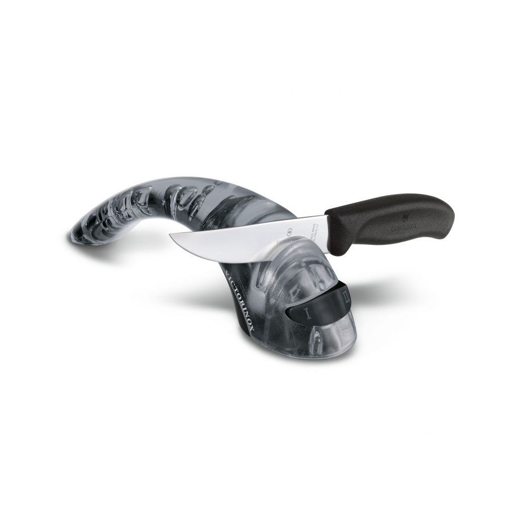 Victorinox 7.8721.3 - це компактна точила з керамічними дисками, яка призначена спеціально для заточування та виправлення кухонних ножів від компанії Victorinox. Зручна ручка ергономічної форми забезпечує комфорт при роботі з точилкою. У точила є два режими функціонування: "диски повністю нерухомі" і "диски вільно обертаються" - режим можна вибрати перемикачем на корпусі точилки. Ручка точила пластикова, чорного кольору з логотипом компанії виробника.