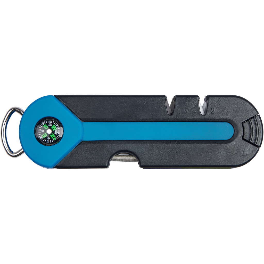 - Оснащено двома V-профілями для заточування (кут 15°, кераміка+карбід) та алмазним точилом (підходить для звичайних та серрейторних лез);