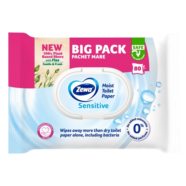 Вологий туалетний папір Zewa є чудовим доповненням до сухого туалетного паперу та спеціально розроблений для делікатного очищення. Він видаляє більше бактерій, ніж просто сухий туалетний папір, і з ним ви можете відчувати більше чистоти й свіжості. Вологий туалетний папір Zewa протестований дерматологами та підходить навіть для чутливої шкіри. Він не містить пластику, є біорозкладним, розчиняється в каналізації, тому його можна безпечно змивати в унітаз. Для виробництва використовується тільки сертифікована целюлоза, добута згідно з принципами дбайливого ставлення до природи.