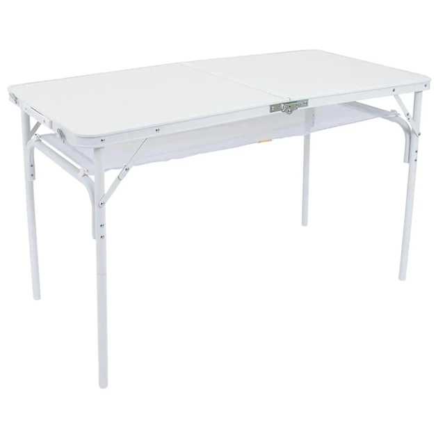 Ніжки легко знімаються, а стільниця складається, завдяки чому стіл компактно складається у вигляді валізки. У складеному стані займає мінімум місця — лише 60x60x7 см. Сітчаста полиця під стільницею стане у пригоді для зберігання дрібниць, а вбудована ручка забезпечує зручне транспортування.