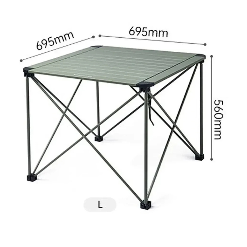 Стіл має оптимальні розміри 695 x 695 x 560 мм, що дозволяє комфортно розміститися за ним до чотирьох осіб. Його можна використовувати як обідній стіл, поверхню для приготування їжі або робочу зону під час кемпінгу. Процес складання займає всього кілька хвилин і не потребує жодних інструментів — усі елементи з’єднуються інтуїтивно просто, утворюючи стабільну конструкцію.