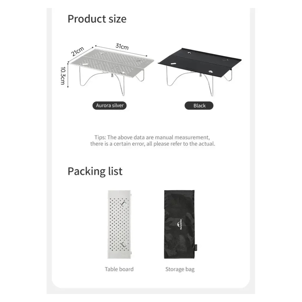 Туристичний стіл Naturehike CNK2450JJ024, 31х21 см, алюміній, чорний (6927595791868)