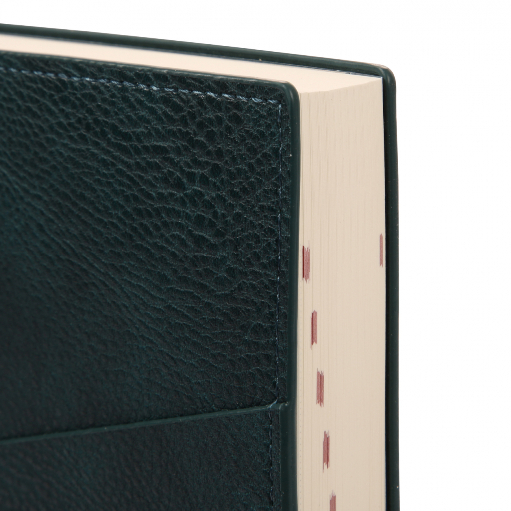 Паперовий блок продуманий до дрібниць для комфортного щоденного користування. Він налічує 368 сторінок, що забезпечує достатньо простору для щоденних записів, планів і нотаток. Папір щільністю 80 г/м² дозволяє комфортно писати ручкою чи олівцем без просвічування. Кремовий папір не втомлює очі навіть за тривалої роботи. Перфоровані кути паперового блока дозволяють легко маркувати актуальну сторінку. Це зручний функціональний елемент, що допомагає швидко орієнтуватися у записах та тримати планування під контролем. Паперовий зріз у колір паперового блока – стримане класичне рішення, що підтримує загальну гармонію дизайну. Ідеально для тих, хто надає перевагу мінімалізму.