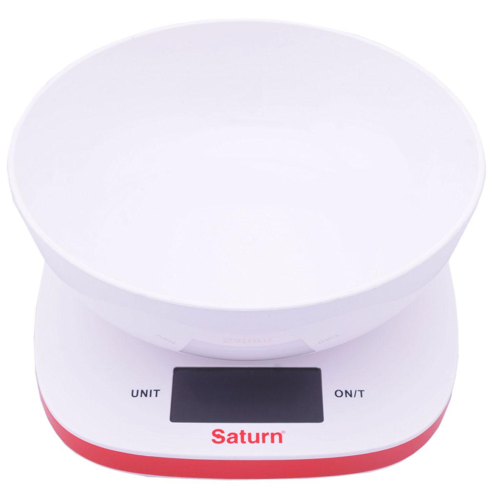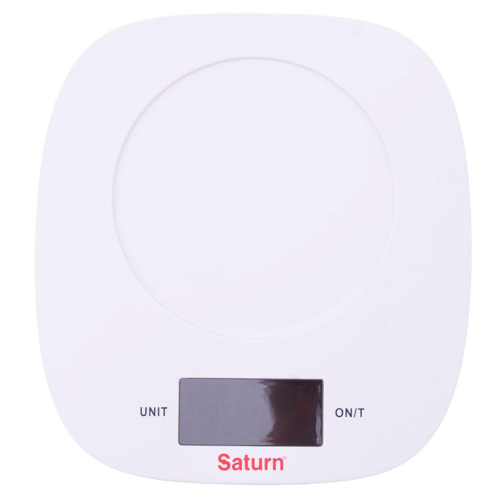 Кухонні ваги SATURN ST-KS7815 з максимальним навантаженням в 5 кг оснащені добре читаним РК-дисплеєм і виконані з пластика з можливістю установки пластикової чаші для сипучих продуктів.