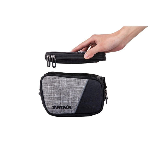Велосипедна сумка TRINX з кріпленням на верхню трубу. Виготовлена з міцного матеріалу, що добре очищується від забруднення. Світловідбиваючі елементи для кращої видимості в темний час доби. Сумка з чохлом для смартфона з діагоналлю до 6", чохол знімається. Для захисту від дощу сумка має чохол.