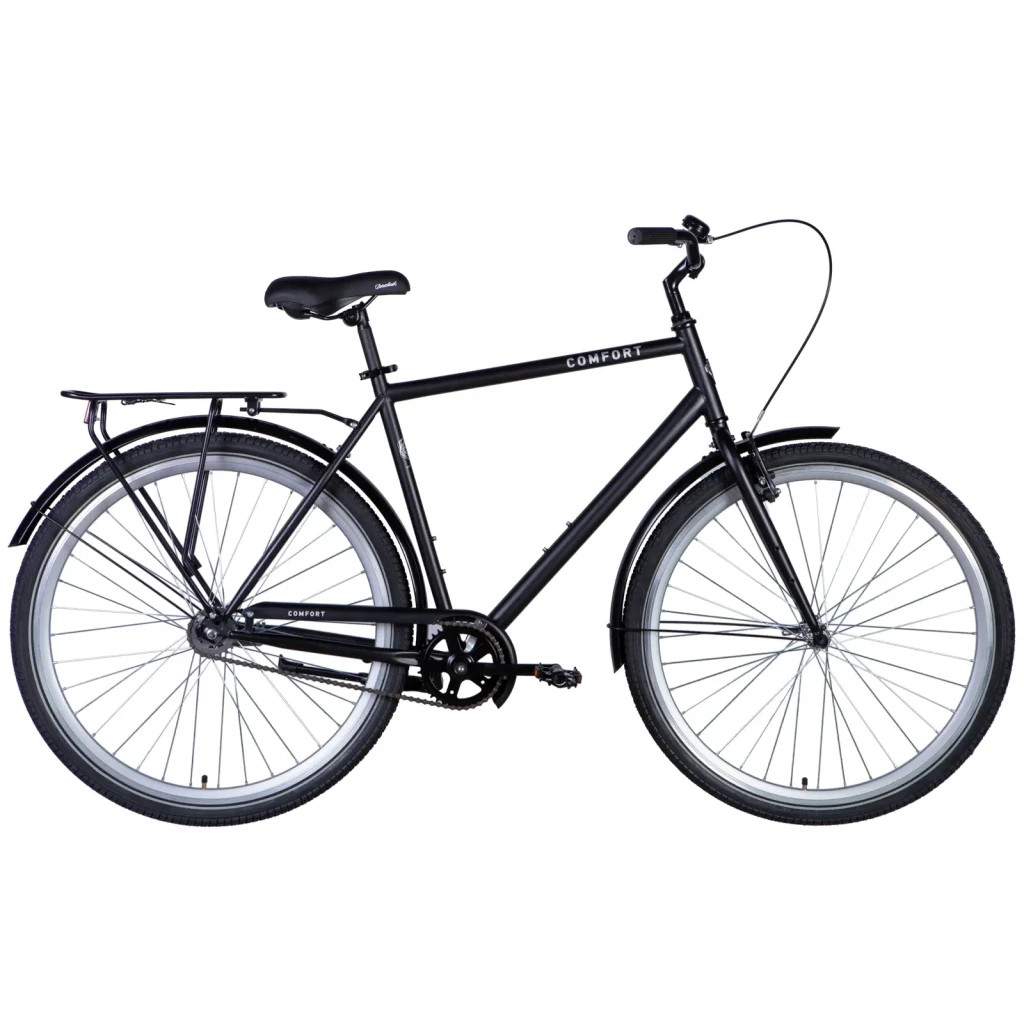 Велосипед 28" Dorozhnik COMFORT MALE чорний (матовий) з багажником задн St з крилом St 2024