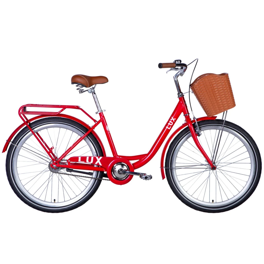 Велосипед дорожній Dorozhnik LUX 26" 2024 - гарний жіночий байк, призначається для поїздок по асфальтовому покриттю, накатаними лісовим і ґрунтовим дорогам. Модель українського виробника, 2024 року випуску. Підходить велосипедисткам зростом від 155 до 170 сантиметрів (розмір рами 17"). Комплектується повнорозмірними захисними крилами від бризок з калюж, зручною підніжкою, дзвінком, міцним багажником та кошиком для перевезення дрібних вантажів. Є кілька стильних колірних рішень. Завдяки зручному широкому сідлу, ергономічному керму та прямій посадці, на велосипеді комфортно у кожній поїздці.