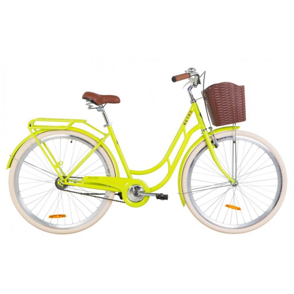 Велосипед Дорожник 28" RETRO рама-19" 2019 салатовий, багажник + кошик (OPS-D-28-144)