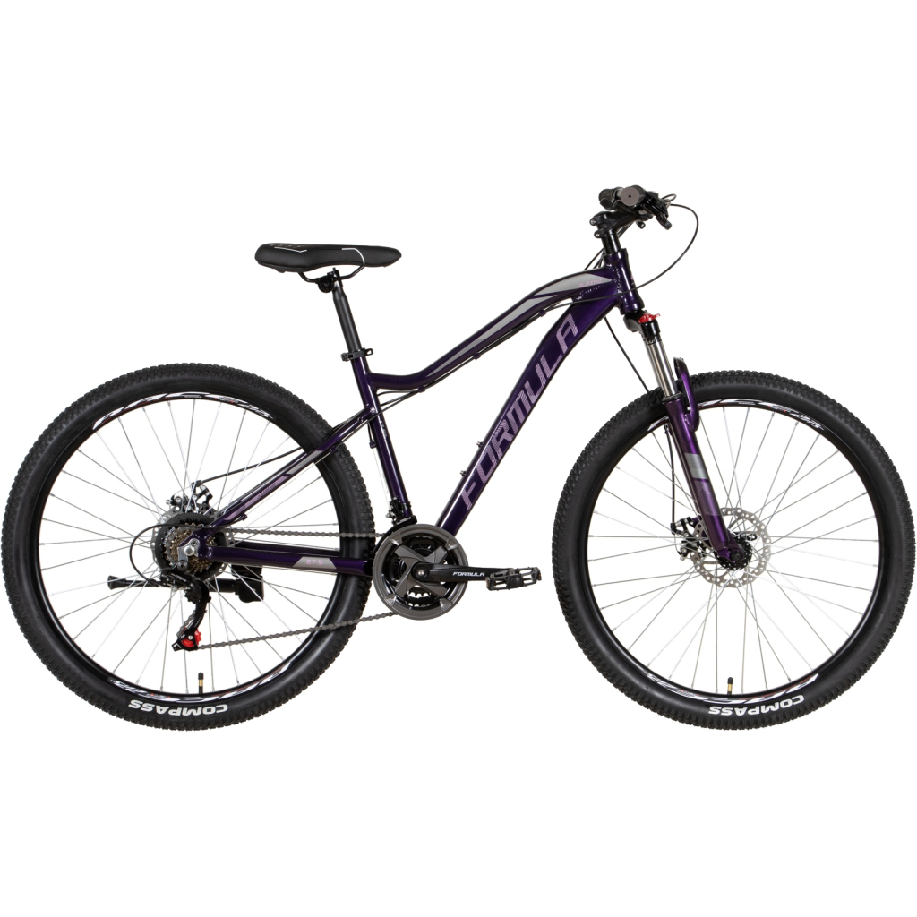 Formula Alpina 27.5" AM DD 2022 - стильний жіночий велосипед для аматорського катання міськими парками, легкою перетнутою місцевістю, лісовими та гравійними стежками. Модель 2022 року, українського виробника. Ростовка рами 17.5" сантиметрів. Велосипед укомплектований зручною підніжкою та захисними швидкознімними крилами. При необхідності передбачені кріплення для встановлення багажника та фляготримача. Алюмінієва рама, верхня труба занижена для зручності посадки.