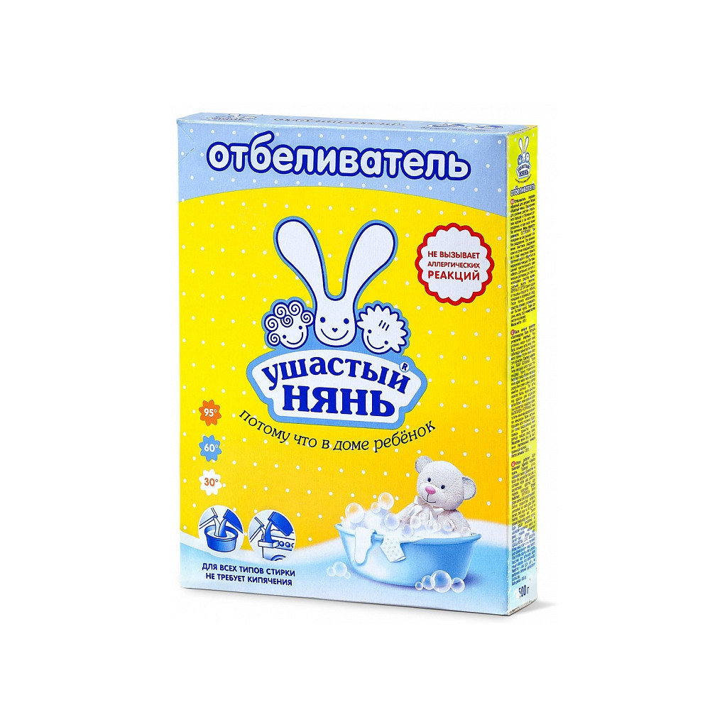 Відбілювач Ушастий нянь 500 г (4820026412931) розроблений спеціально для посилення дії прального порошку і відбілювання одягу дітей будь-якого віку, в тому числі новонароджених. Відбілює без кип'ятіння при низьких температурах, а це дозволяє зберегти первинний вигляд одягу навіть після багаторазових праннях. Може використовуватися для різних видів тканин як при пранні вручну, так і в пральній машині. Дозволяє економити до 50% прального порошку. Не містить хлор.