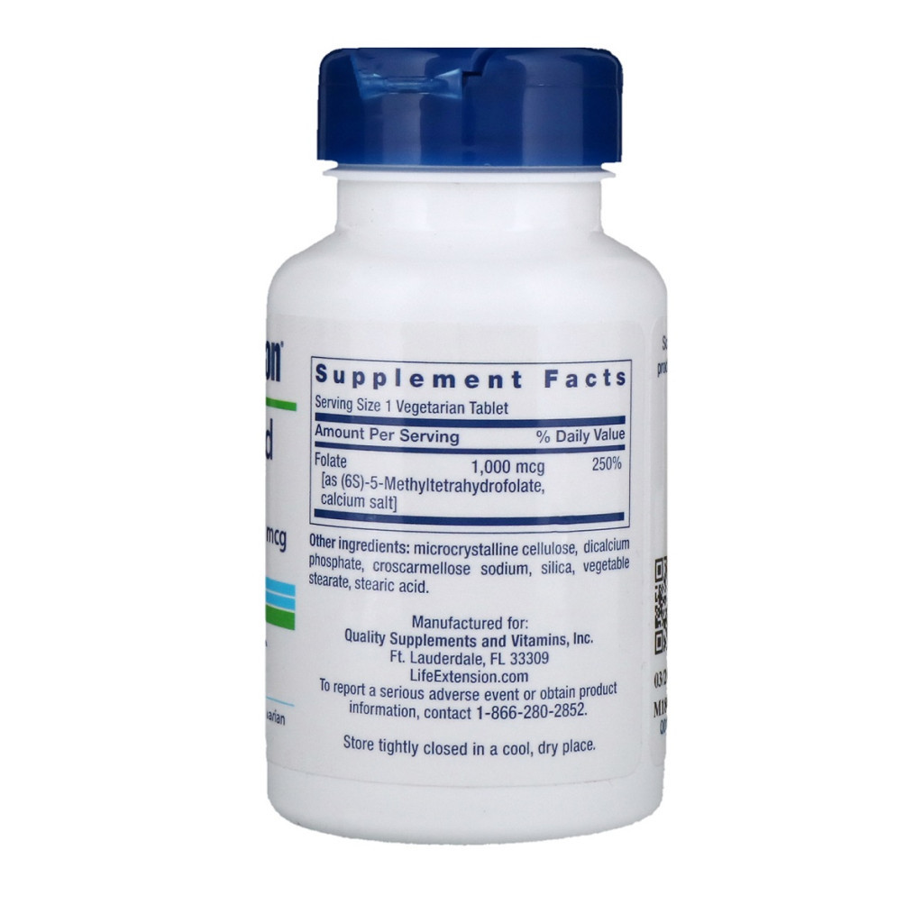 Вітамін Life Extension ¶Оптимізований фолат, Optimized Folate 1000 мкг, 100 таблето (LEX-19391)