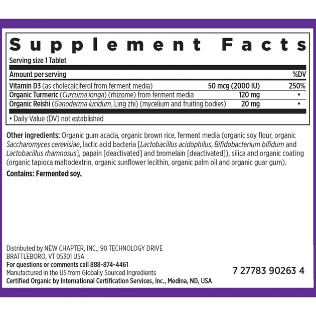 Вітамін D - жиророзчинний вітамін, необхідний практично всім системам життєдіяльності людини. Його також називають сонячним вітаміном, оскільки наш організм здатний накопичувати його в процесі прийому сонячних ванн. У цю формулу від New Chapter крім легко засвоюваного органічного вітаміну D3 входять гриби рейши і куркума, для максимальної користі кісткам, зубам, імунній системі і здоров'ю серця.