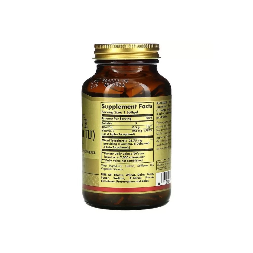 Вітамін Solgar Вітамін Е 400 IU, 100 желатинових капсул (SOL-03541)