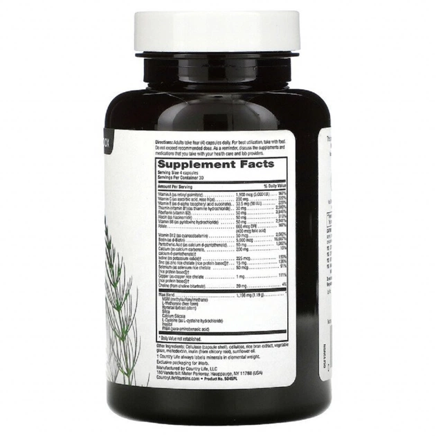 До складу входить вітаміни групи В, які комплексно впливають на здоров'я волосся. Вітамін В2 зміцнює волосся. Перешкоджаючи виникненню ламкості і сухості. Вітамін В3 зміцнює природну пігментацію волосся, таким чином зберігає колір і перешкоджає виникненню сивини. Вітамін В6 і вітамін А оздоровлюють шкіру голови, перешкоджаючи виникненню лупи і почуттю стягнутості. Вітамін В9 прискорює ріст волосся, а вітамін В7 перешкоджає їх випаданню.
