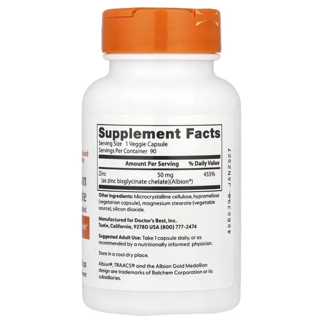Цинк – це найважливіший мінерал, який бере участь у всіх життєво важливих процесах організму. Він входить до складу більш як 300 видів ферментів. Форма хелату бісгліцинату цинку допомагає запобігти дефіциту цинку, підтримує здатність організму засвоювати поживні речовини, забезпечуючи чудову засвоюваність і м'яко впливаючи на шлунок.