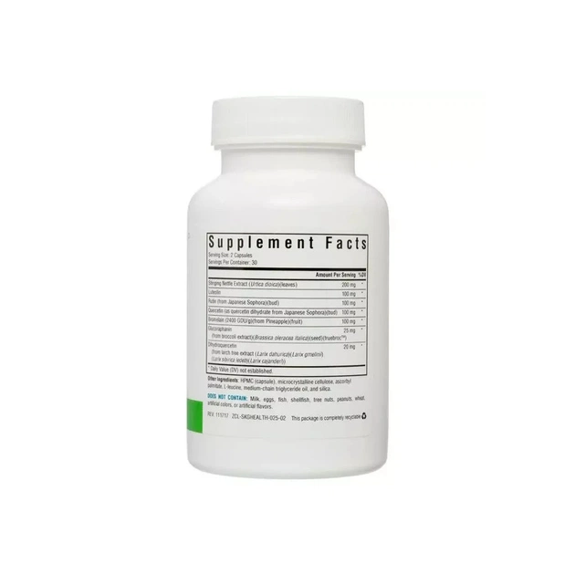 До складу комплексу HistaminX входять біофлавоноїди, ферменти та інші рослинні сполуки, які ефективно нейтралізують дію сезонних алергенів. Ці антиоксидантоподібні сполуки можуть допомогти модулювати реакцію організму на гістамін та підтримувати його здоровий рівень. Кверцетин стимулює імунну функцію та опорність організму. Рослинні екстракти у складі необхідні підтримки дихання. Листя кропиви зазвичай використовуються підтримки здоров'я дихальних шляхів, сечовивідних шляхів і слизових оболонок. Бромелайн - це фермент, що міститься в ананасі, він використовується як травний фермент і вважається, що він допомагає підтримувати нормальні запальні та загоювальні реакції. Глюкорафанін - з'єднання, що міститься в хрестоцвітих рослинах роду, він підтримує здорові процеси детоксикації, сильну імунну систему та забезпечує мітохондріальну підтримку. Формула використовує гомеопатичний підхід, щоб стимулювати природні захисні механізми організму та привести системи організму до здорового балансу.