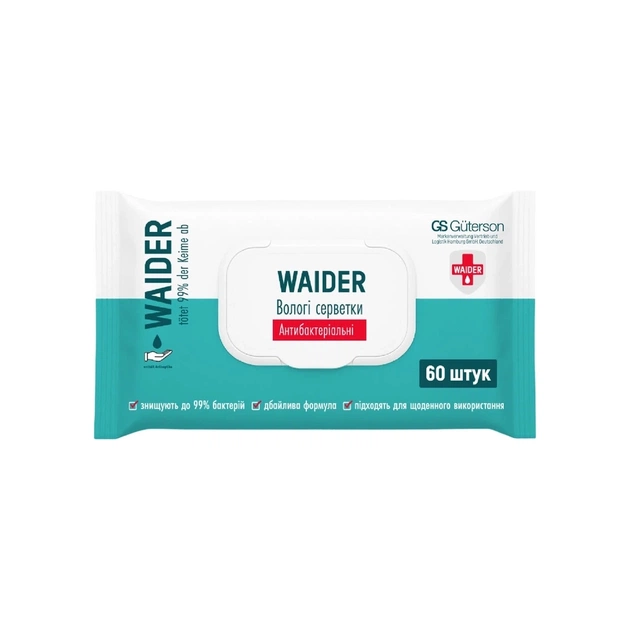 Вологі серветки Waider Антибактеріальні 60 шт. (4820204703370)
