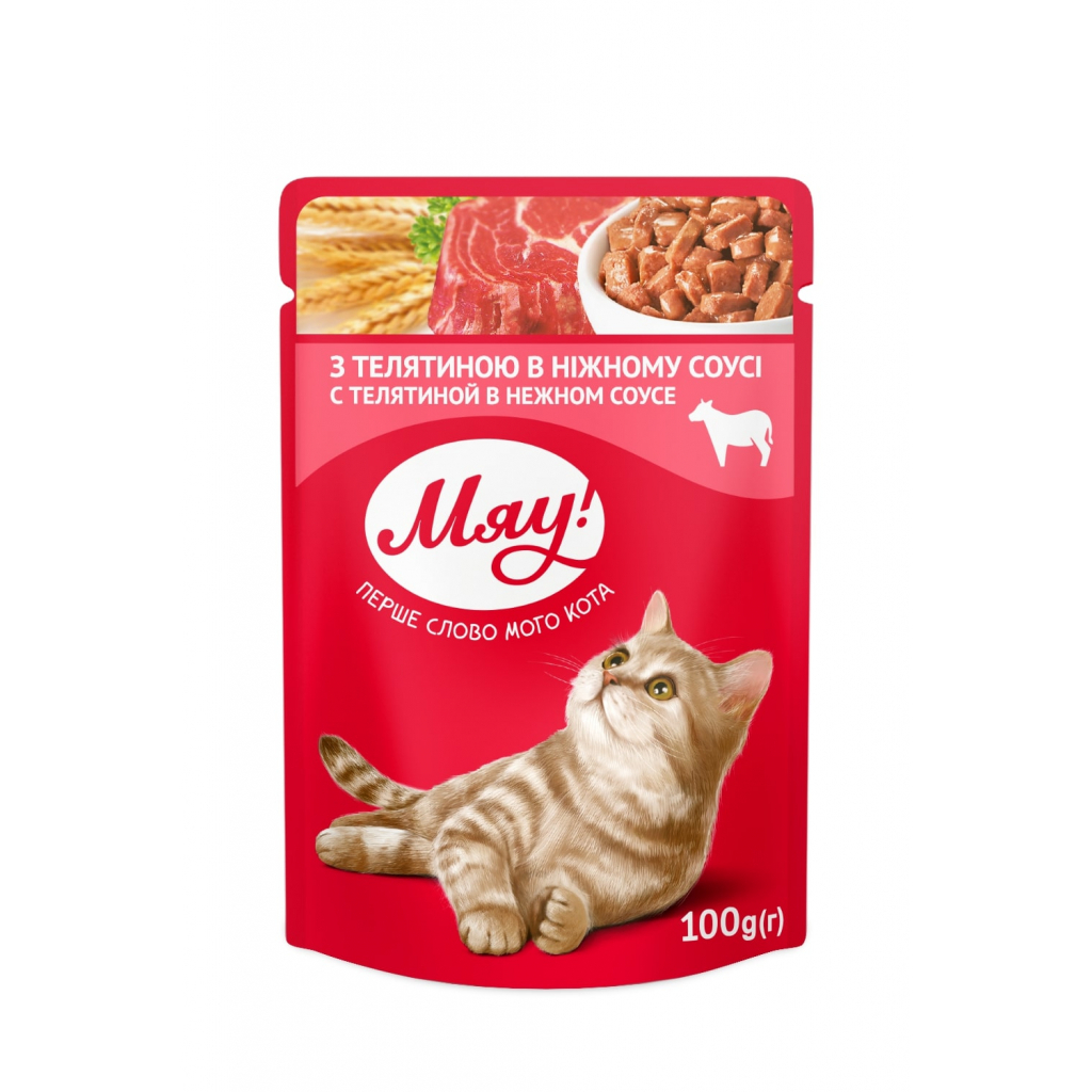 Вологий корм для кішок Мяу! в ніжному соусі зі смаком телятини 100 г (4820083901560)