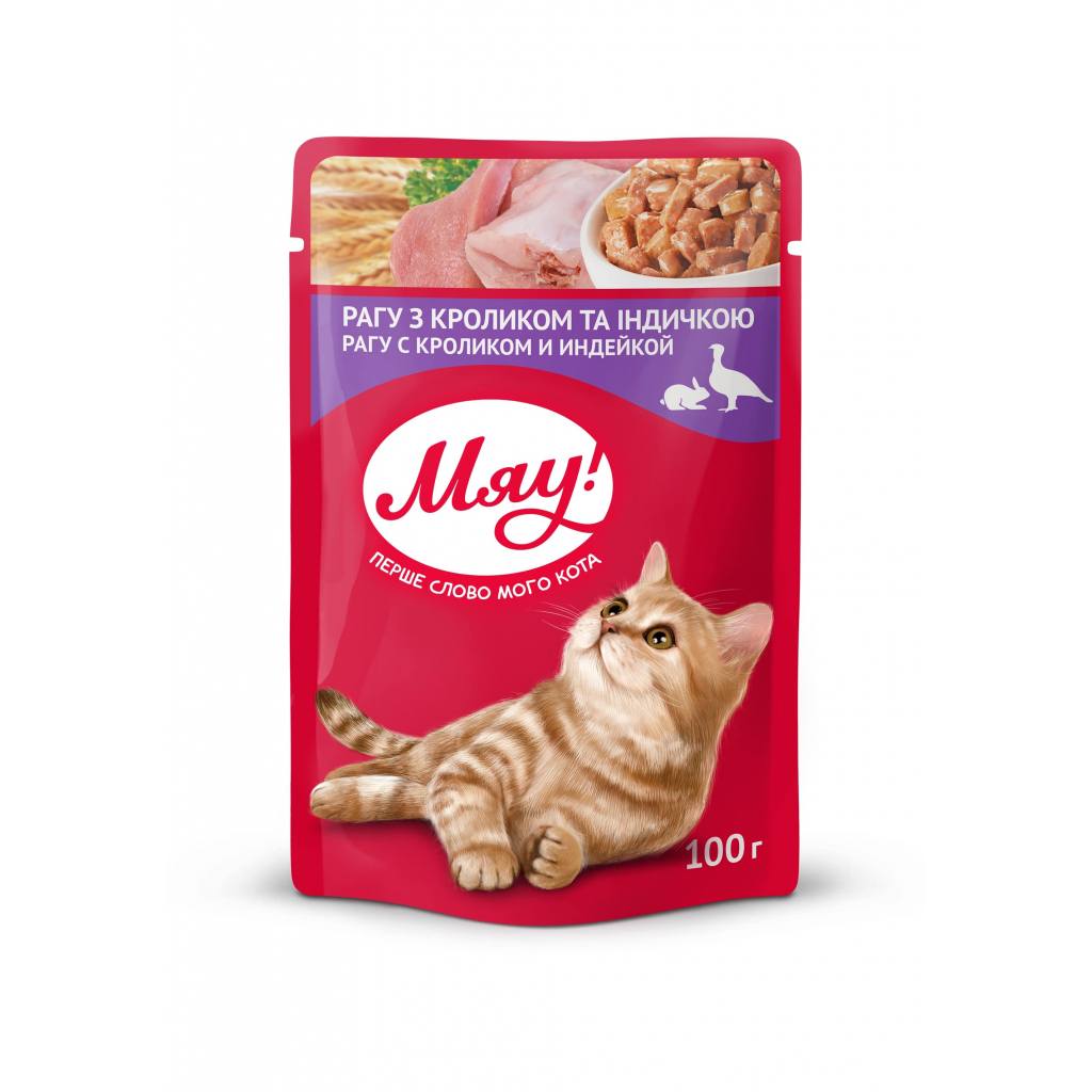 Вологий корм для кішок Мяу! в соусі зі смаком рагу з кроликом та індичкою 100 г (4820083902819)