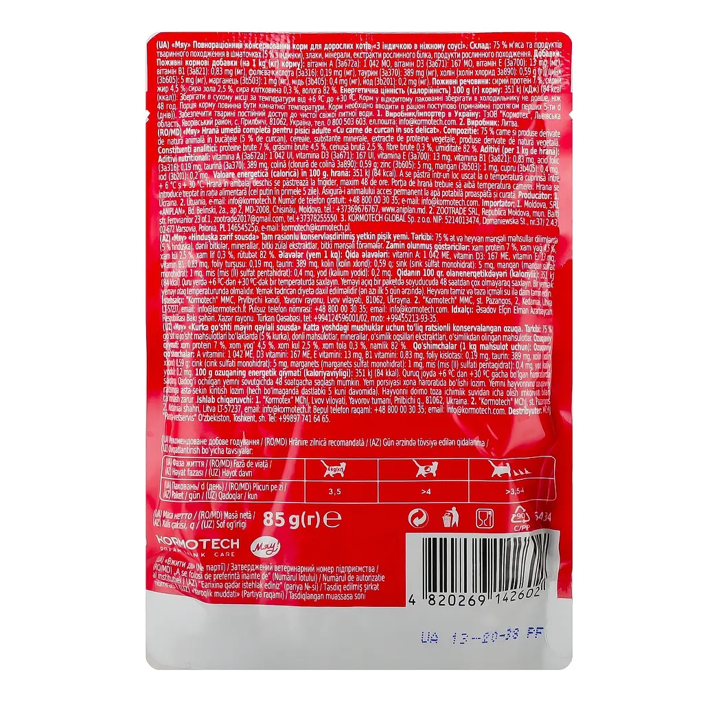 Вологий корм для кішок Мяу! З індичкою в ніжному соусі 85 г (4820269142602)