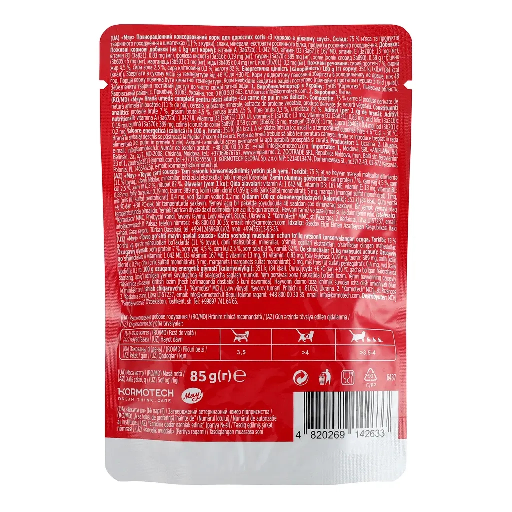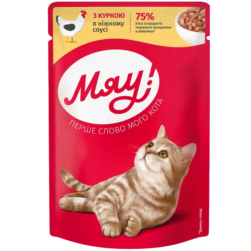 Вологий корм для кішок Мяу! З куркою в ніжному соусі 85 г (4820269142633)