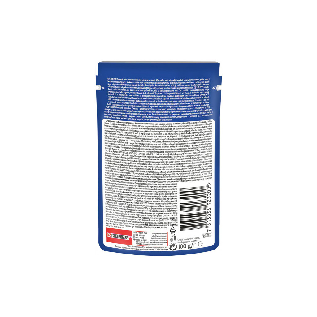 Повний корисних поживних властивостей, корм задовольнить 100% добової потреби кішки, якщо слідувати рекомендаціям щодо годівлі. Purina Felix Fantastic Duo доступний у широкому асортименті комбінацій із соковитим желе, щоб щодня задовольняти любов кішки до різноманітності страв.