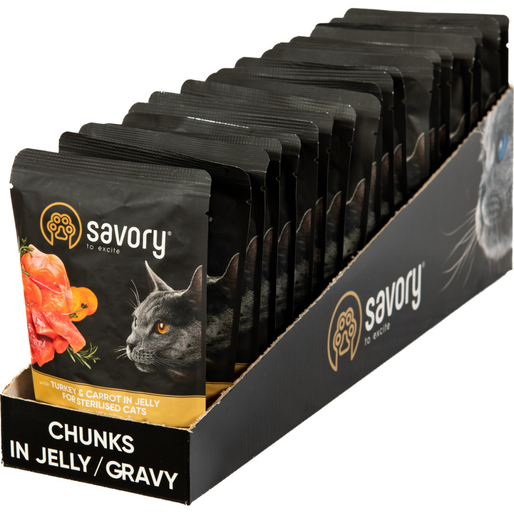 Вологий корм для кішок Savory для стерилізованих індичка з морквою в желе 85 гх22 шт (2700000029343)
