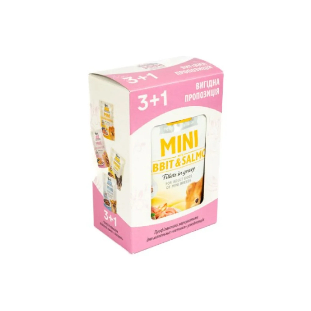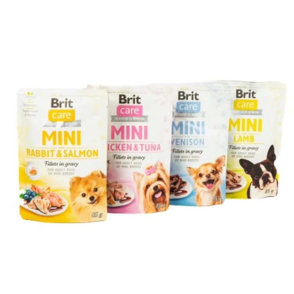 Набір Brit Care Mini мікс для дорослих собак 3+1 складається із 4-ох паучів з вологими кормами суперпреміум класу: