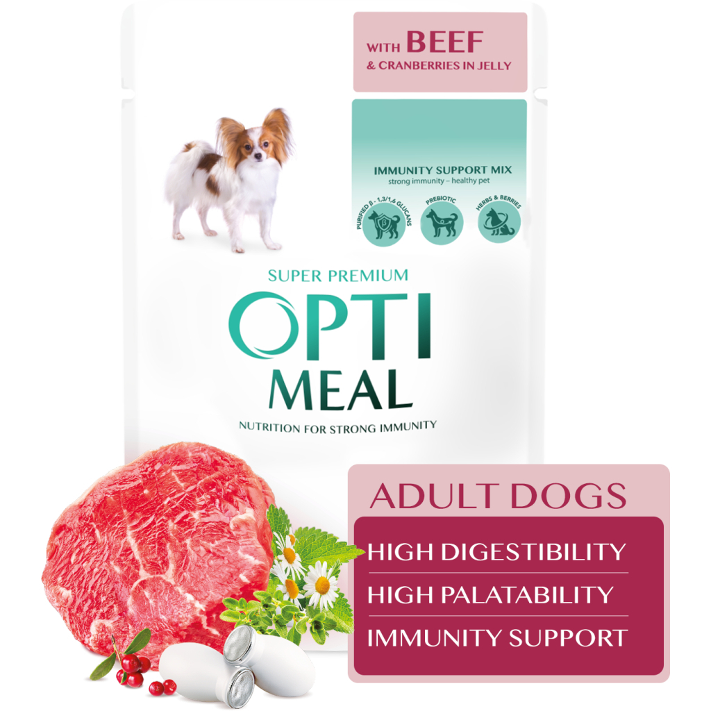 Вологий корм для собак Optimeal з яловичиною та журавлиною в желе 100 г (4820215369626)
