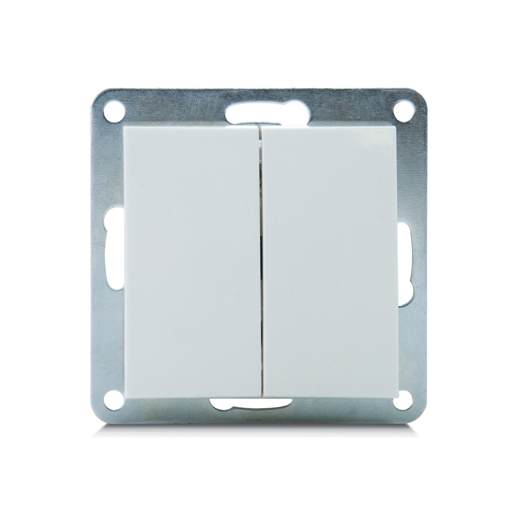 Електровстановлювальне обладнання SVEN SE-60016 white (4895134780883) вимикач подвійний (для двох ланцюгів із загальним вводом) прихованого типу білий. Основа з оцинкованої сталі 1 мм. Підпружинені кріпильні зачепи для зручності монтажу. Поліпшена конструкція клем для дротів. Можливість управління двома джерелами світла.
