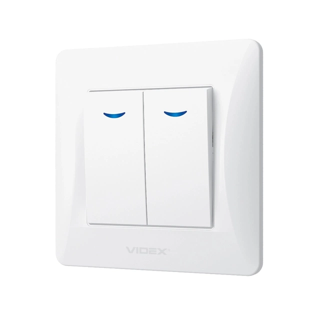 Вимикач Videx BINERA 2кл з підсвічуванням білий (VF-BNSW2L-W)