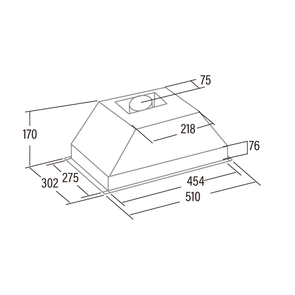 Повновбудована витяжка, відведення/рециркуляція повітря, продуктивність 760 м3/год, механічне керування, 2 швидкості