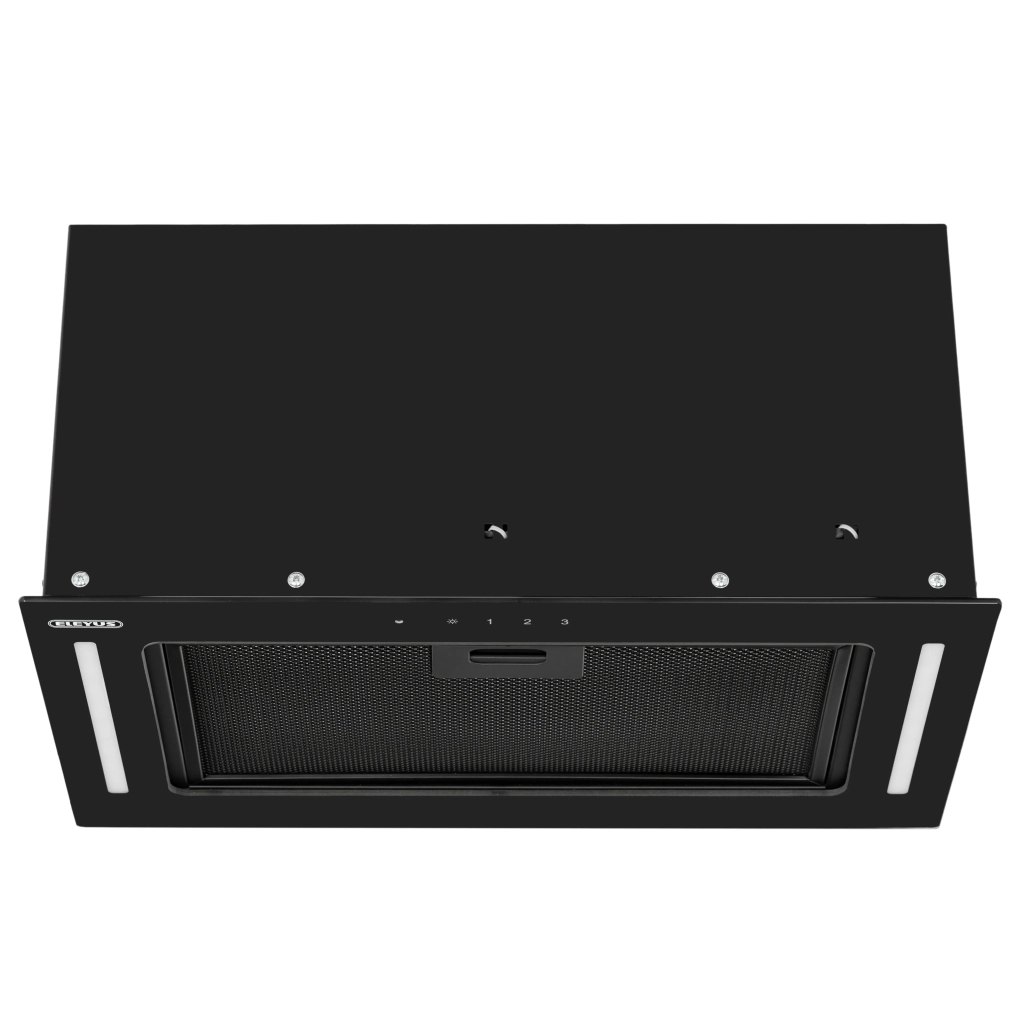 Витяжка виготовлена з гартованого скла чорного кольору. Кухонна витяжка ELEYUS NAVIS повністю вбудовується в кухонну шафку, що економить простір вашої кухні та гармонійно доповнює загальну візуальну картинку інтер’єру.